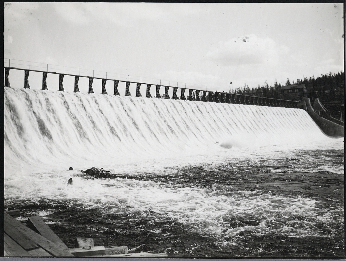 Titel: Porjus kraftverk i Stora Luleälv under byggnation. Stora skibordet.