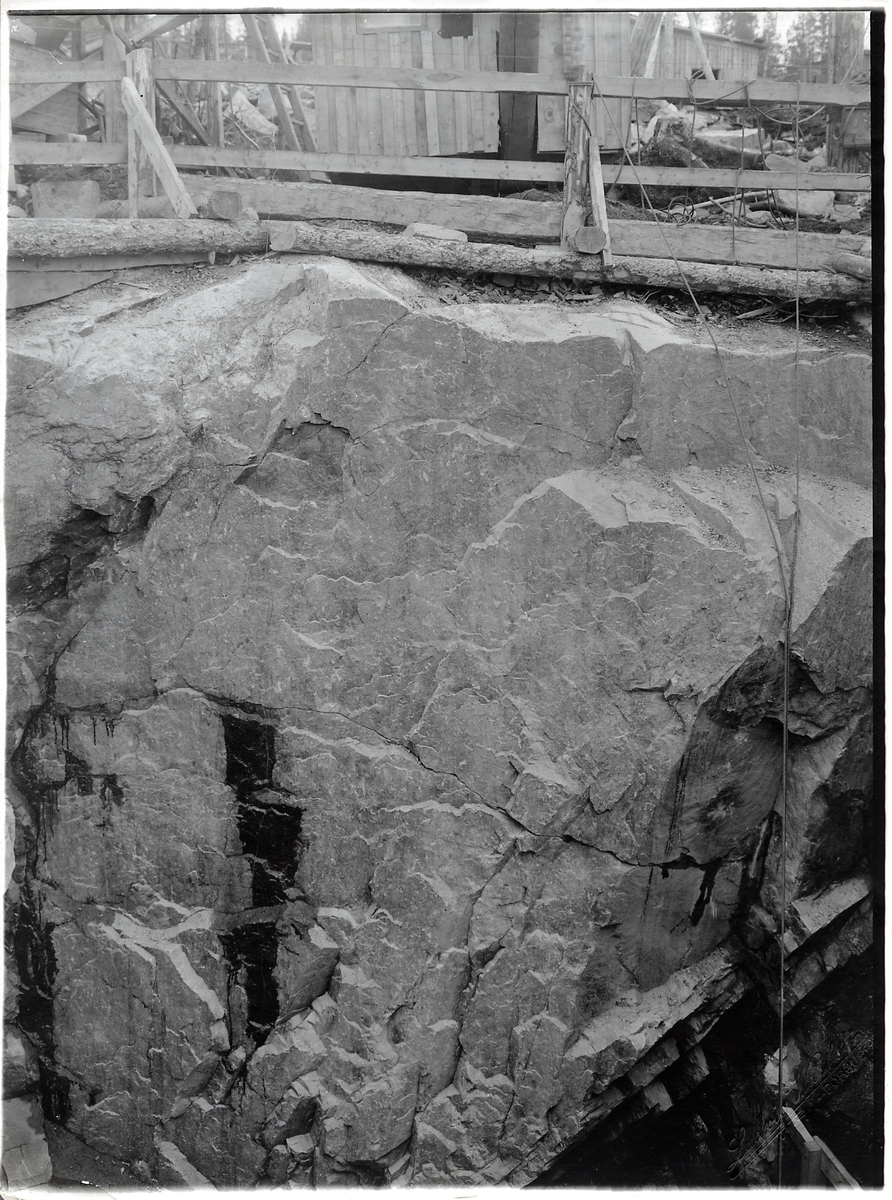 Bilden visar en stenvägg i kabelschaktet i Porjus.