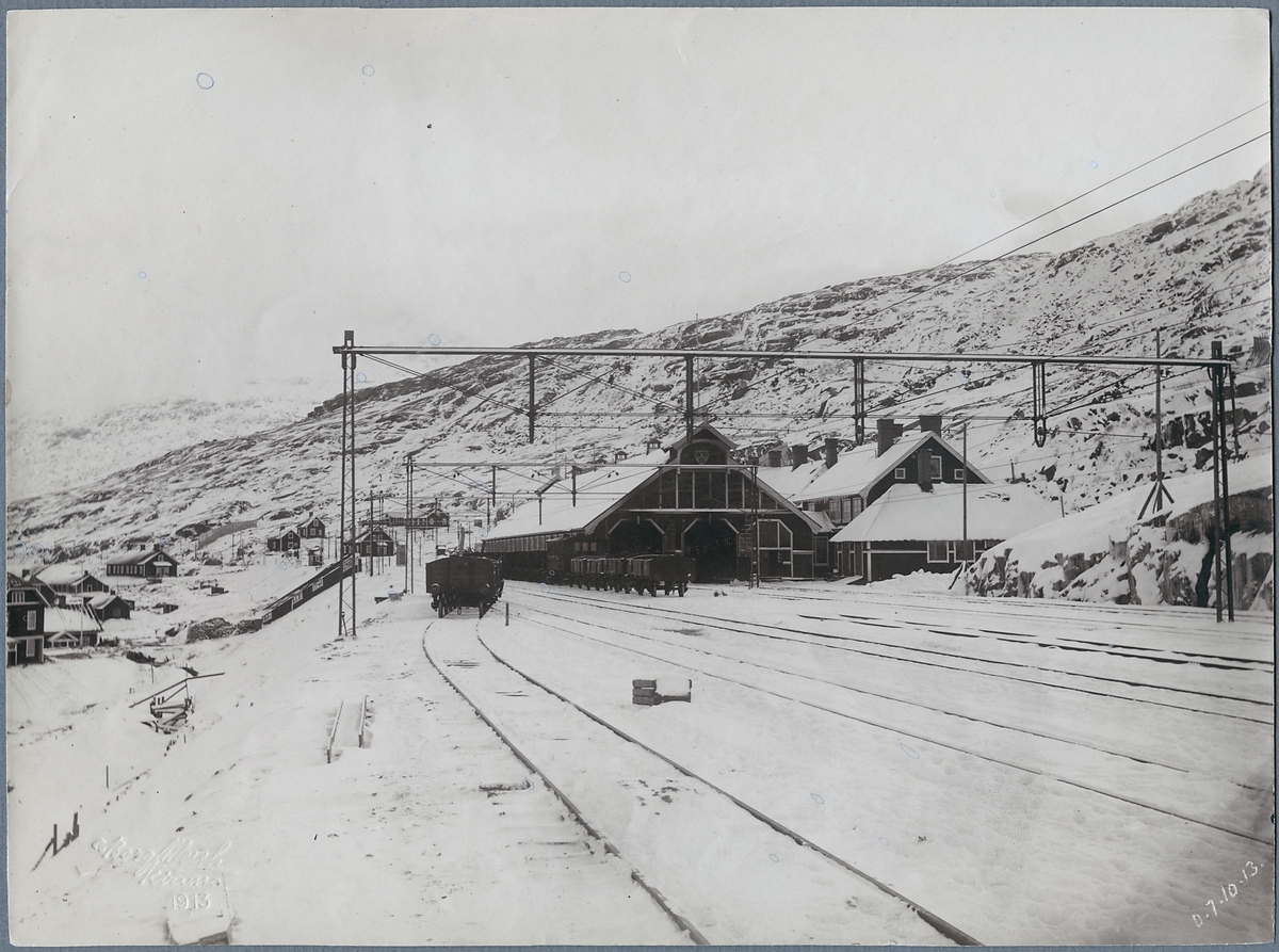 Riksgränsens bangård, banhall och stationshus vid elektrifieringen.