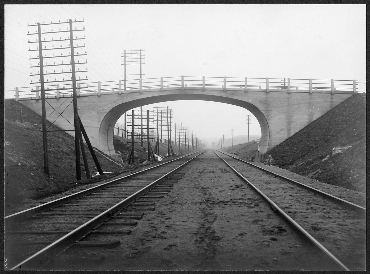 Dubbelspår under bron i Bankesta, km skylt under bron 2.