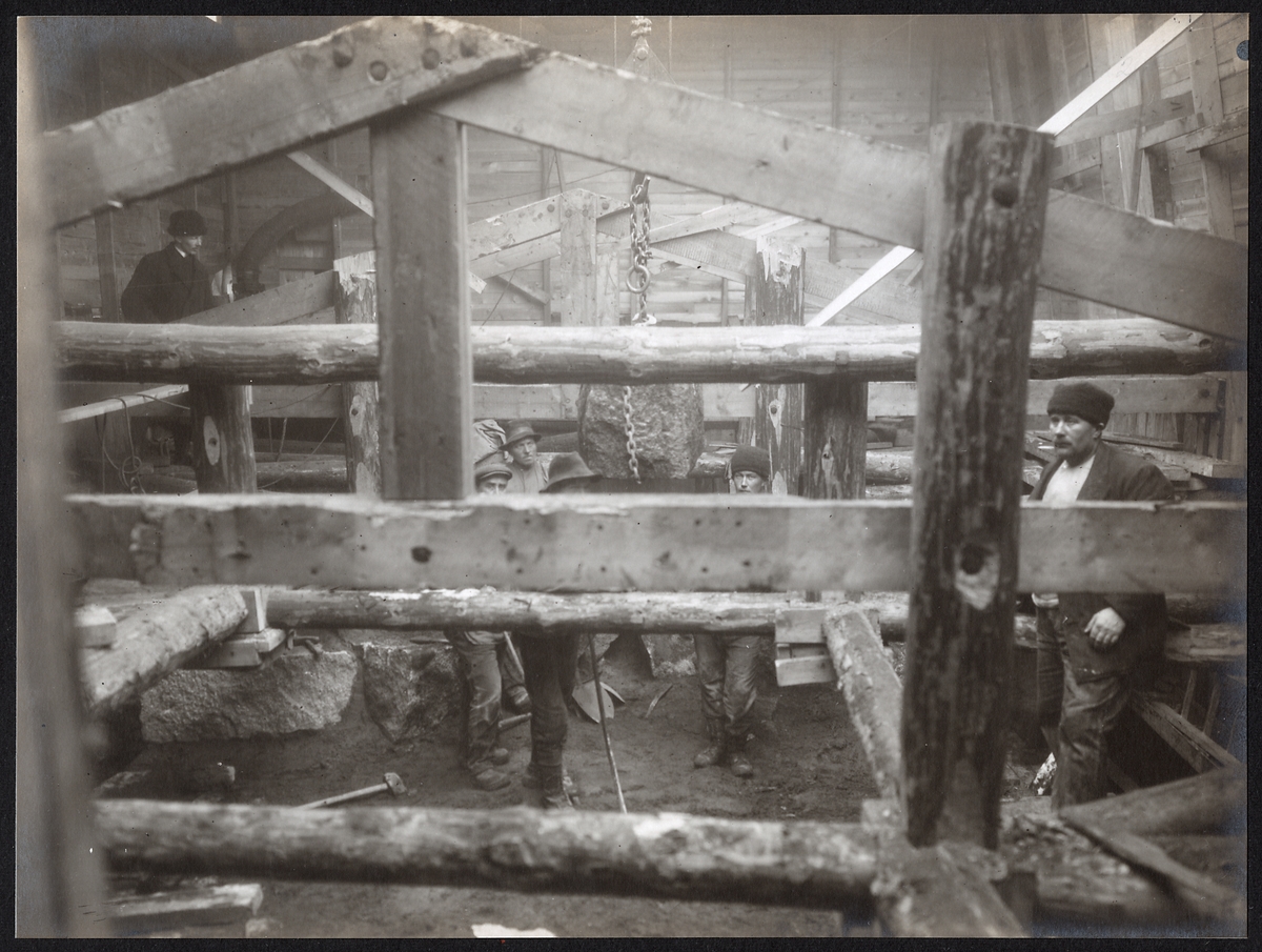 Titel: Dalälven vid Mora. Arbetslag i arbete med bropelare nr 2.