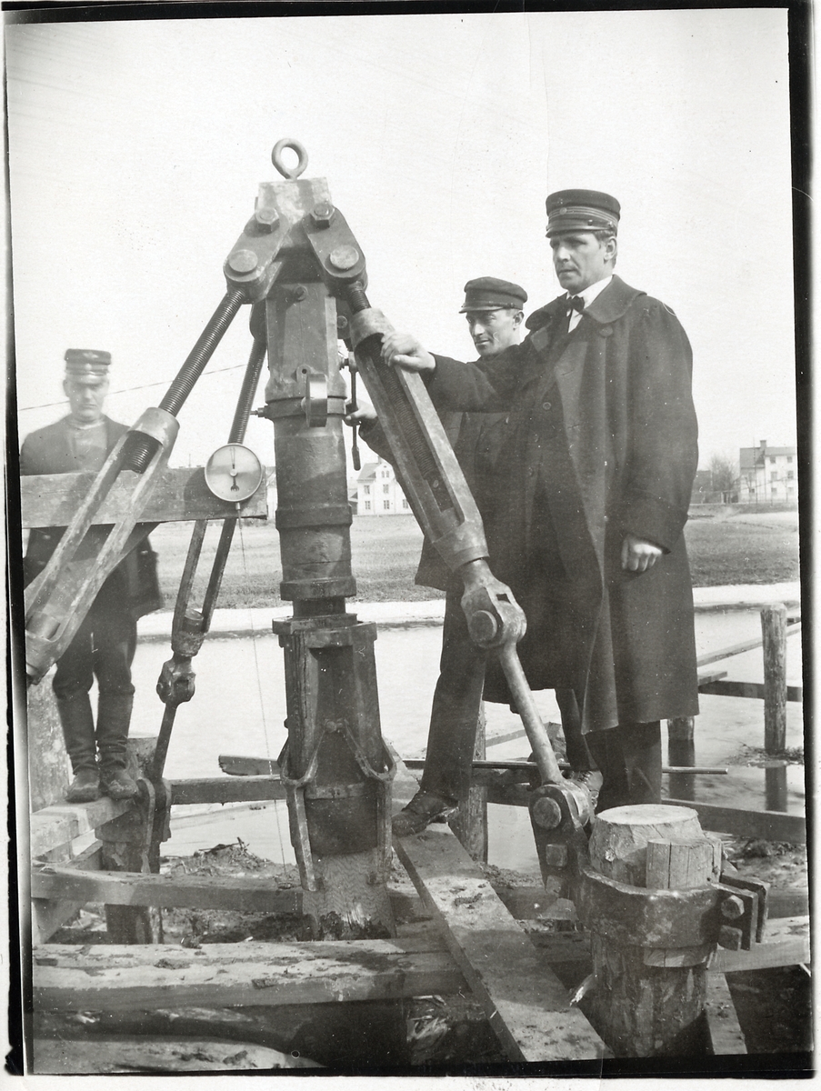 Titel: Högre tjänstemän på bron över Fyrisån i Uppsala.