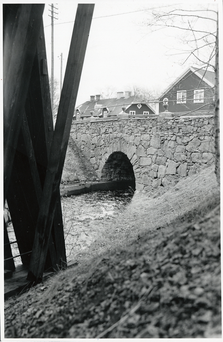 Titel: En landsvägsbro och en del av Sveriges äldsta järnvägsbro i trä.