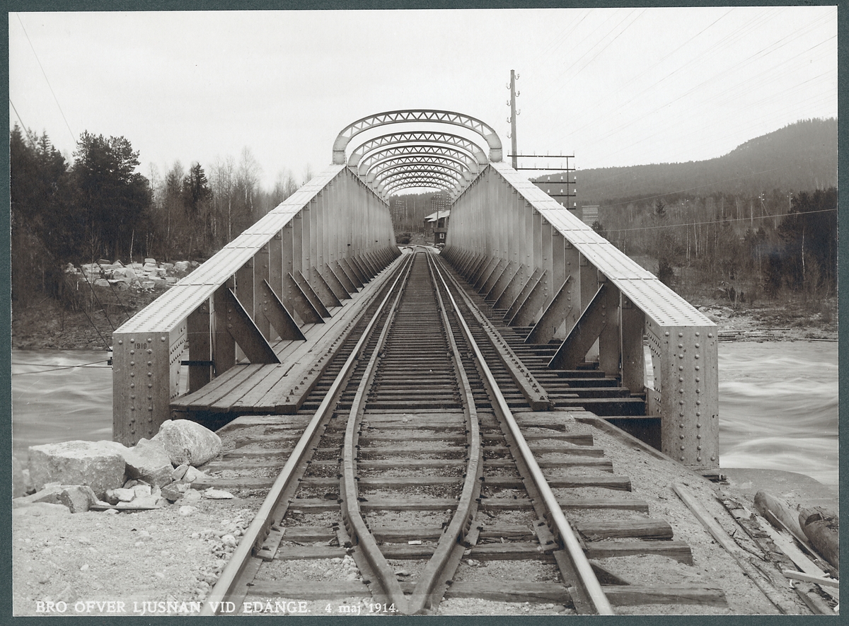 Titel: Järnvägsbro över Ljusnan älv vid Edänge.