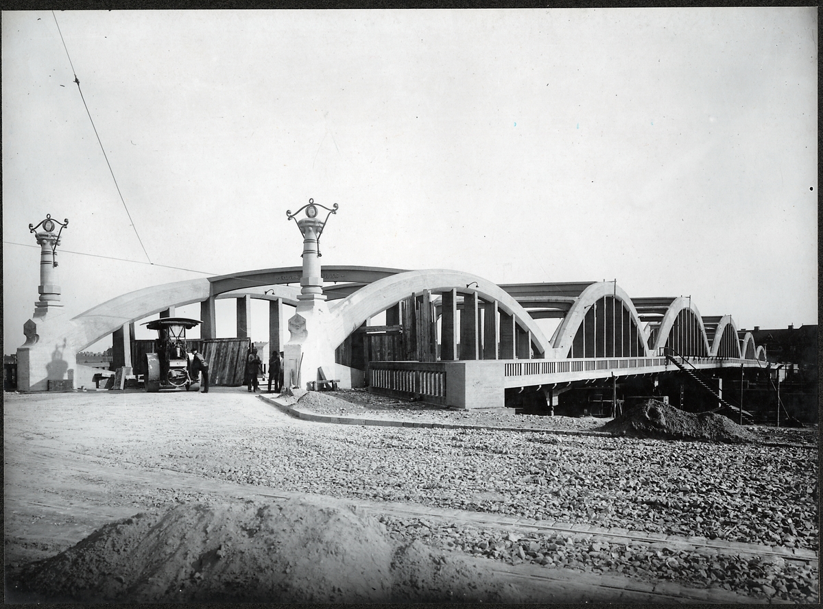 Titel: Vy över Kreuger & Tollbron som går över Malmö bangård.