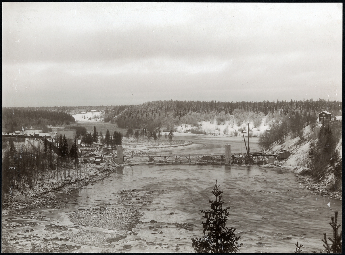 Vy över Skellefteälven vid bron på linjen mellan Klutmark och Slind, längs statsbanan Bastuträsk-Skellefteå-Skelleftehamn.