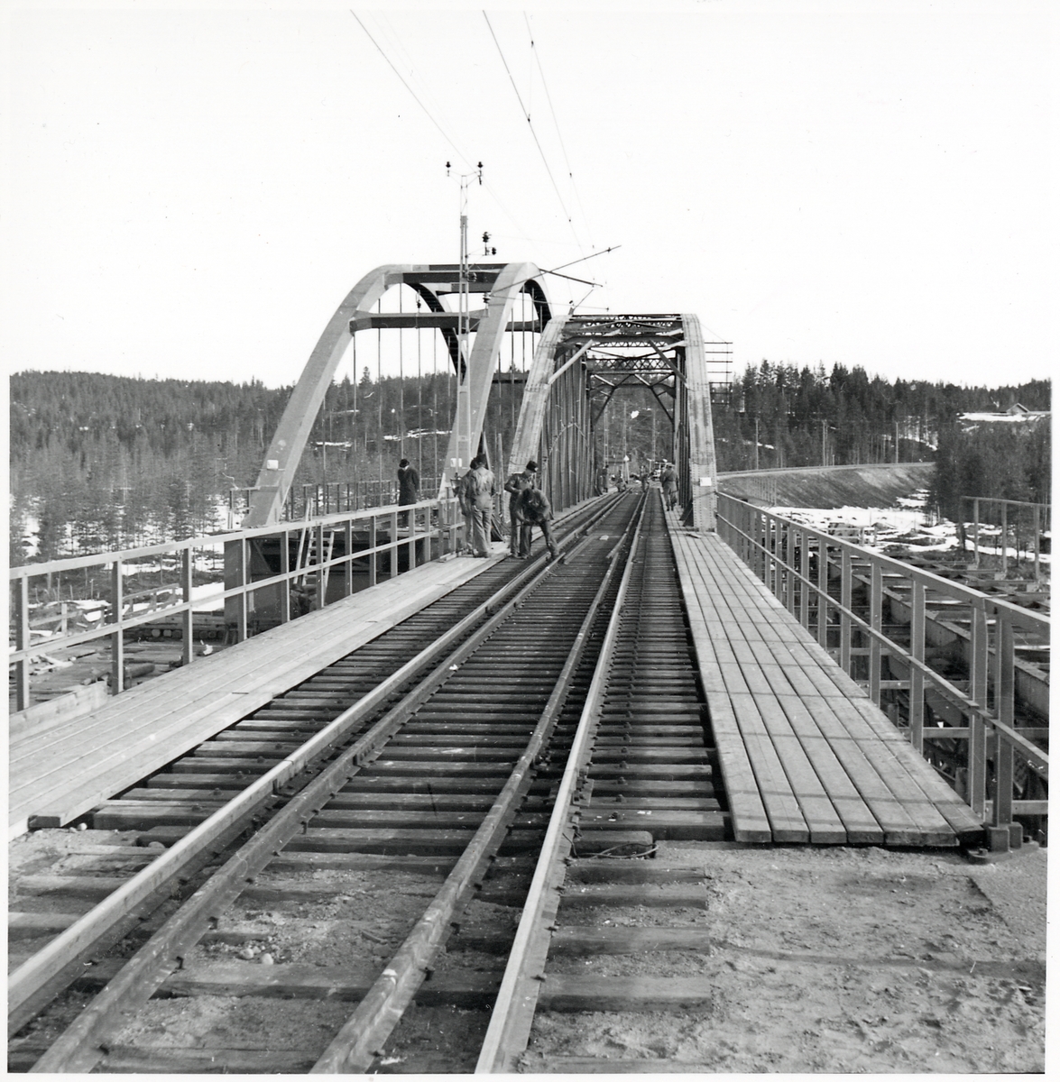 Anläggande av ny bro över Skellefteälven på linjen mellan Karsbäcken och Kusfors, längs norra stambanan.