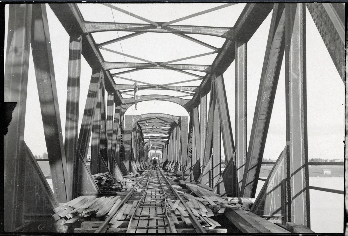 Svängbro över Torne älv under uppbyggnad. På linjen mellan Haparanda - Torneå.