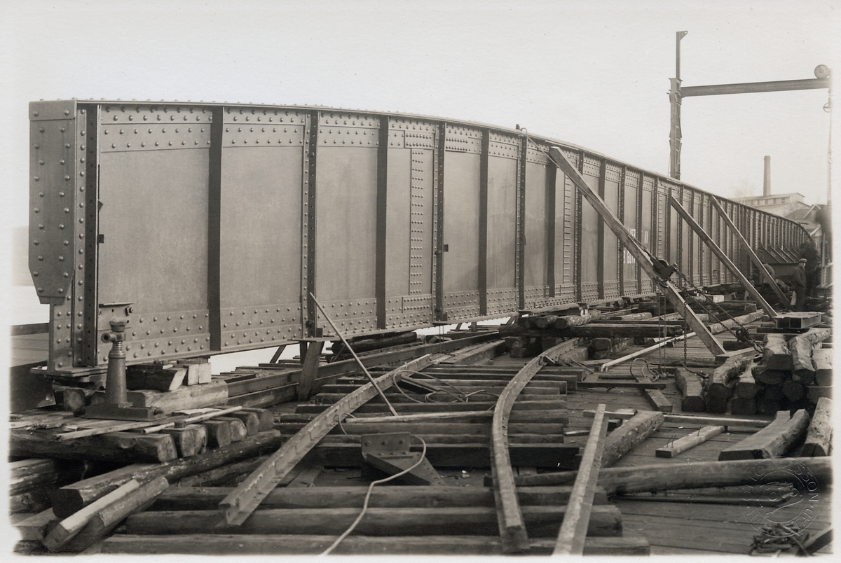 Titel: Brobygge över Ätran. Montering av brobalkar.