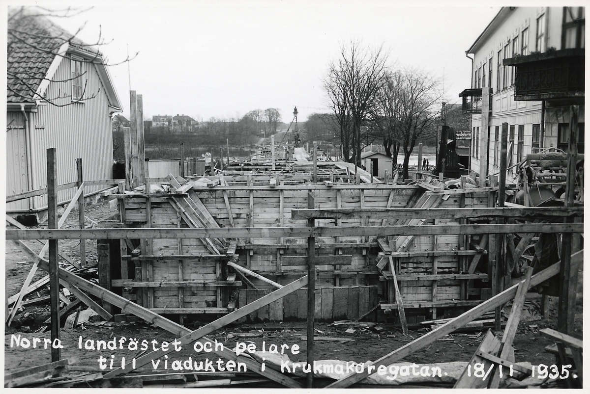 Titel: Byggarbetsplats för viadukt vid Krukmakaregatan.