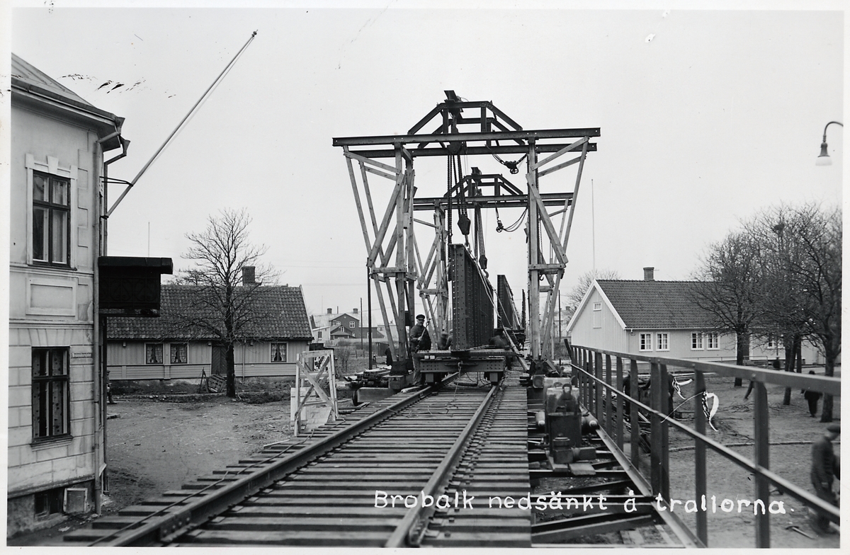 Titel: Brobalk lastas på trallor.