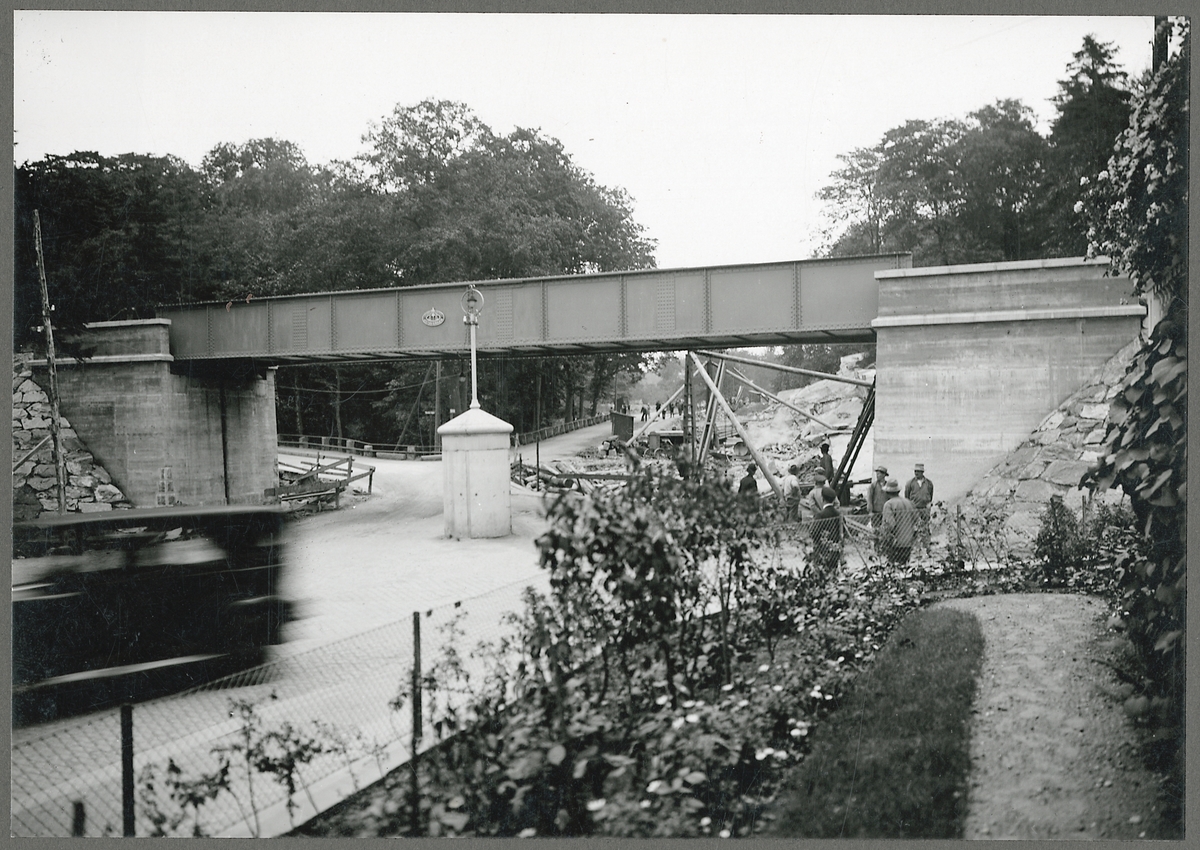 Titel: Vägport för bilar och bro för tåg över Örgrytevägen.