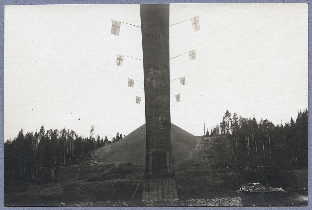 Titel: Nyåkersbron (2:a bron av Tallbergsbroarna) över Öreälven. Sedd underifrån på invigningsdagen 5/19-1919.