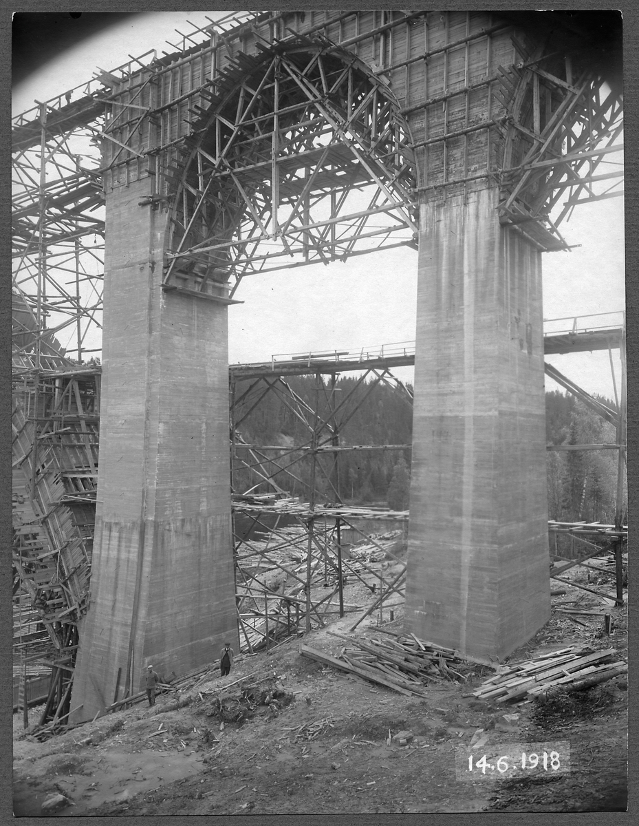 Titel: Pelare till järnvägsbro över Öreälven under byggtiden.