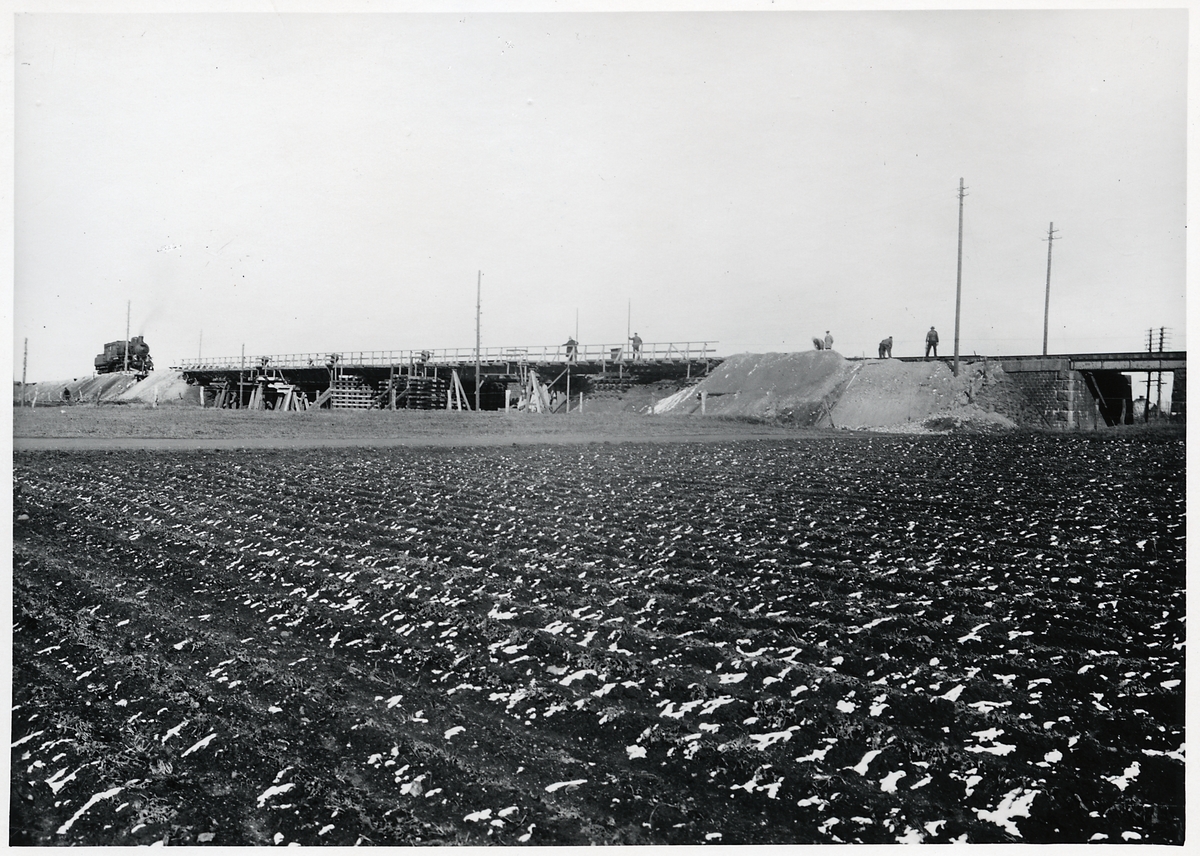 Ombyggnad av viadukten över Malmö Ystads Järnväg, på sträckan mellan Malmö och Trelleborg. Provbelastning av provisorisk viadukt.