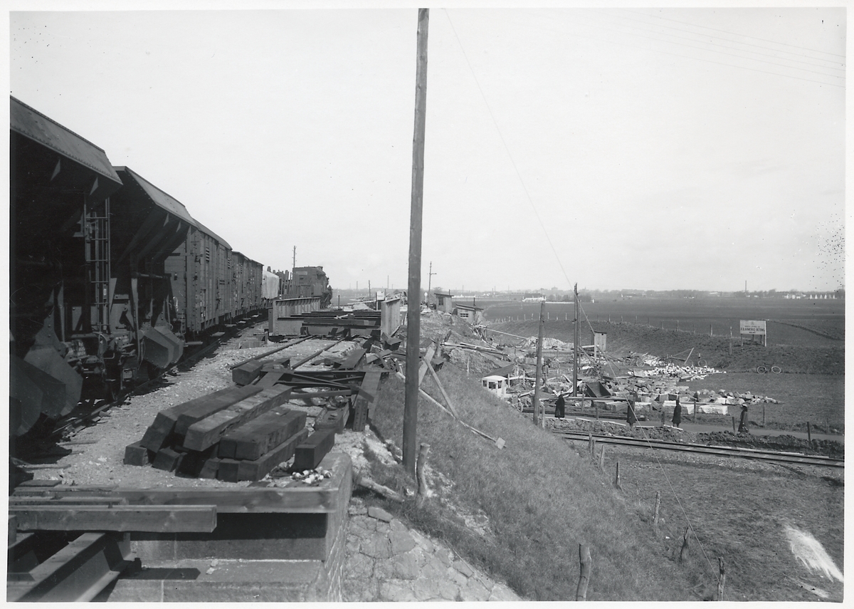 Ombyggnad av viadukten över Malmö Ystads Järnväg, på sträckan mellan Malmö och Trelleborg. Tåg passerar över provisorisk viadukt.