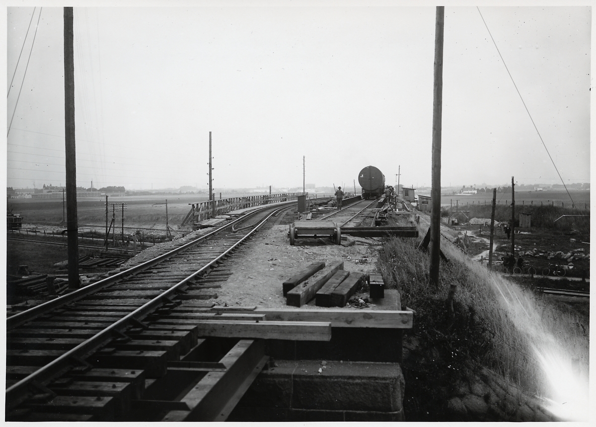 Provbelastning av viadukt under ombyggnation av viadukten över Malmö Ystads Järnväg, på sträckan mellan Malmö och Trelleborg.