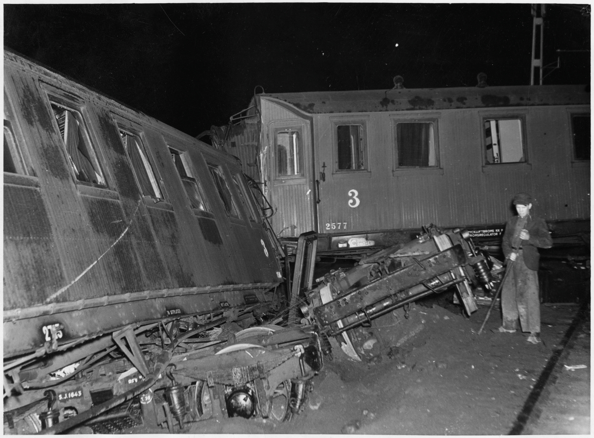 Personal vid Statens Järnvägar, SJ Co8 2577 efter tågolycka.