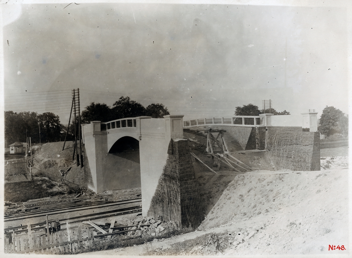 Byggnation av vägbro över järnvägsspår, på sträckan mellan Norrköping och Östra Eneby.