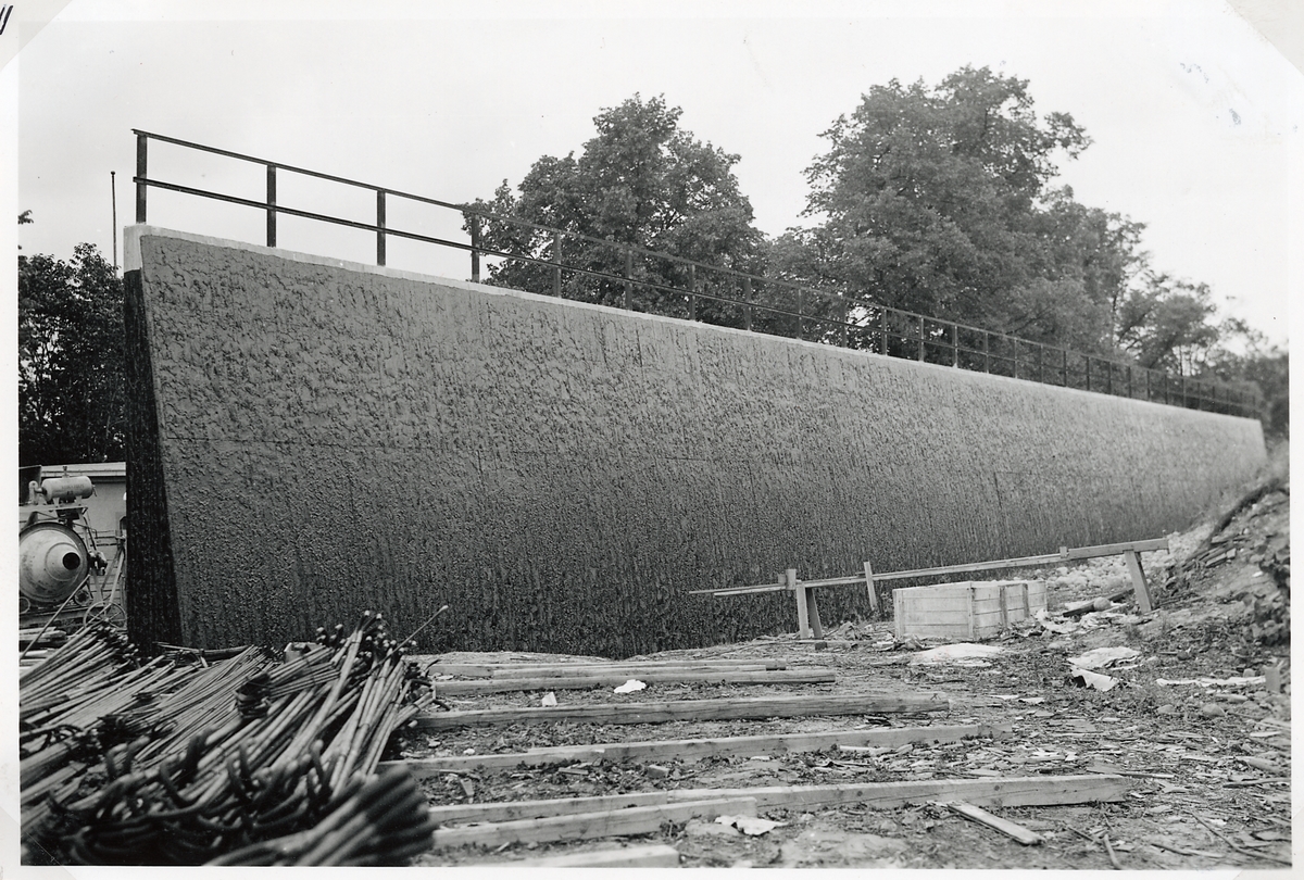 Uppförande av stödmur för järnvägsbanken vid byggnationen av ny järnvägsviadukt över Norrtullsgatan. Belägen ca 100 m öster om östra landfästet i nya vidaukten. Isoleringen slutförd.