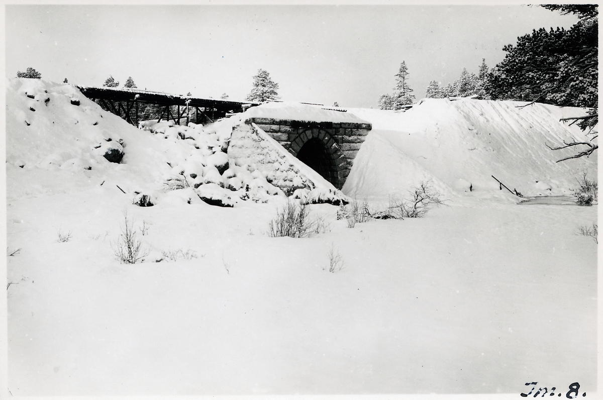 Brobygge under vintern på linjen mellan Kåbdalis och Jokkmokk strax söder om Jokkmokk.