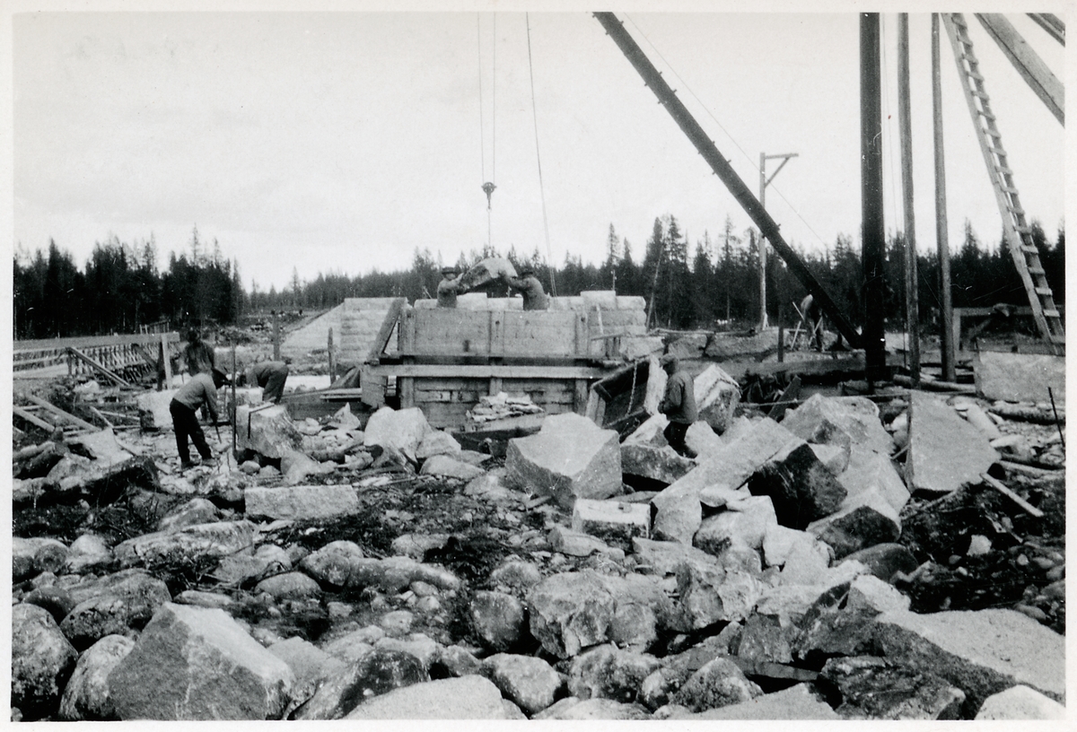 Titel: Bropelare byggs till Skellefteälvsbron på linjen mellan Sorsele och Arvidsjaur vid Slagnäs.