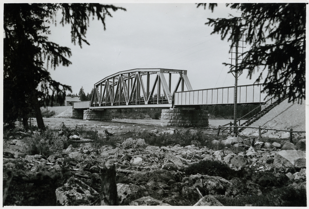 Titel: Järnvägsbro över Skellefteälven vid Slagnäs på linjen mellan Sorsele och Arvidsjaur.