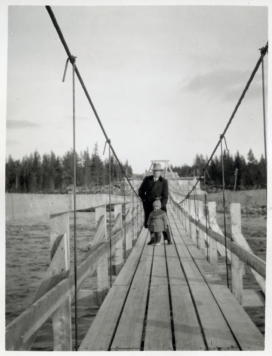 Titel: Provisorisk transportbro över Skellefteälven vid Slagnäs på linjen mellan Sorsele och Arvidsjaur.