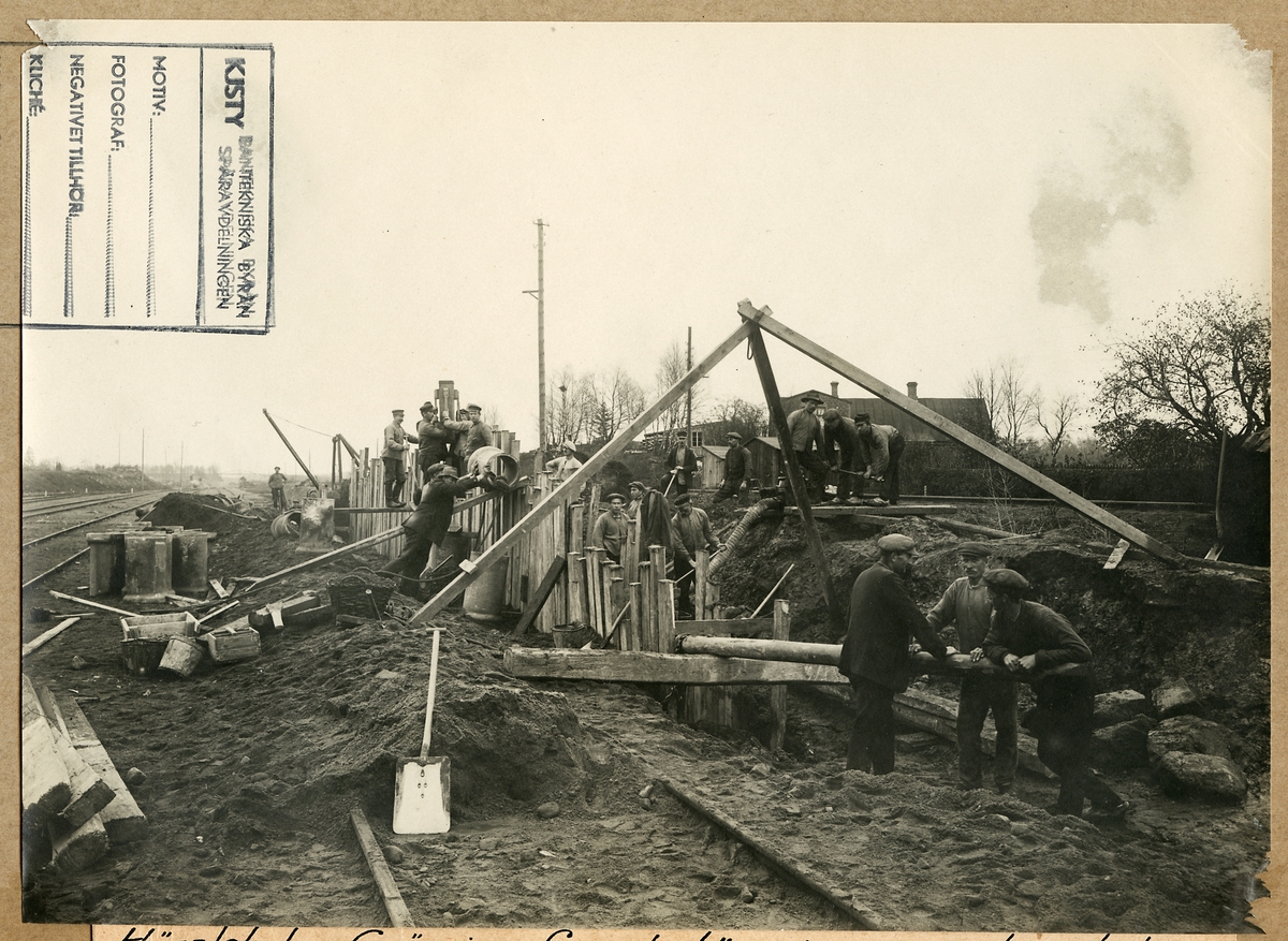 Grävning och läggning för avloppsledning i Hässleholm, Skåne 1918.