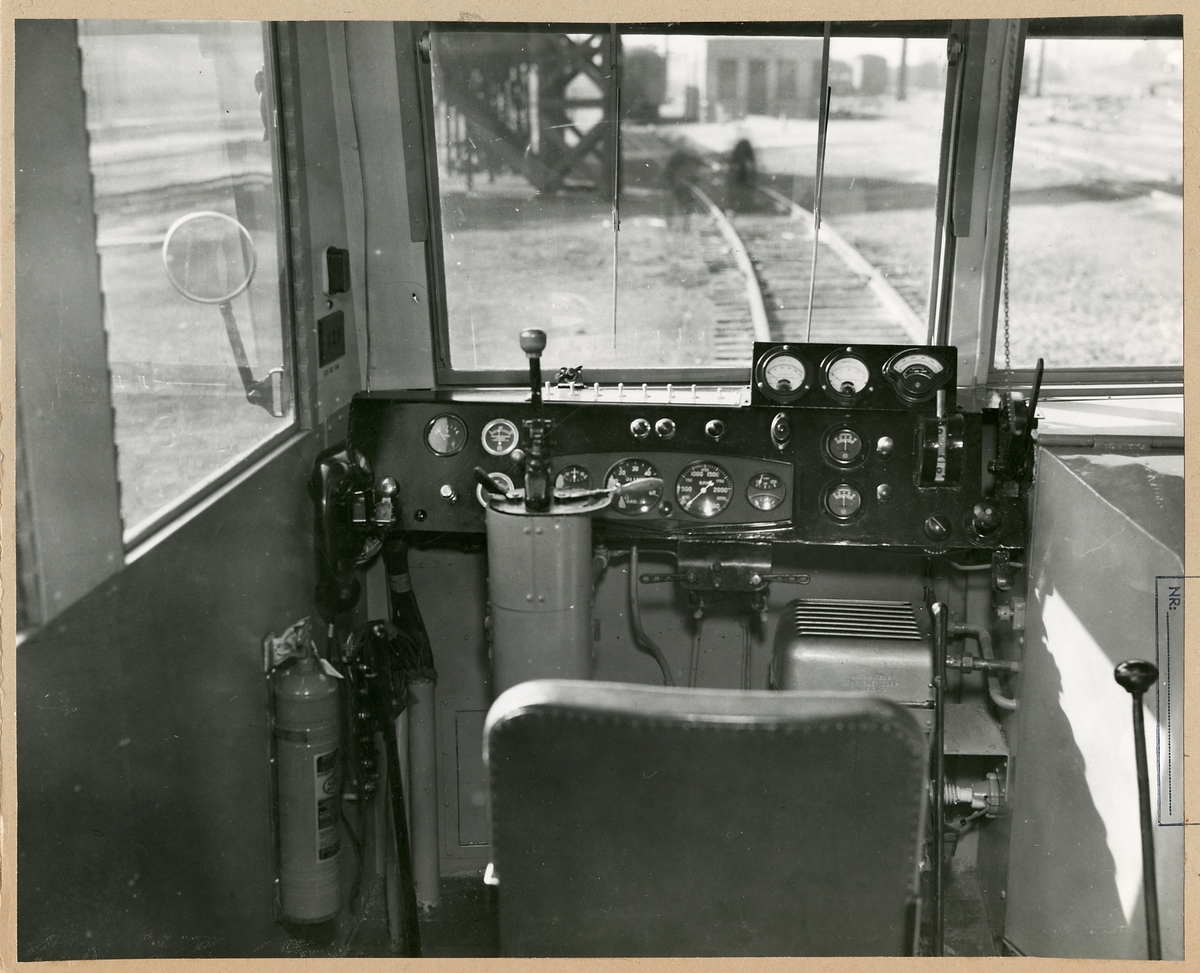 Sperry-mätvagn littera DC2, interiör, från Illinois Central Railroad, USA, 1 maj 1945.