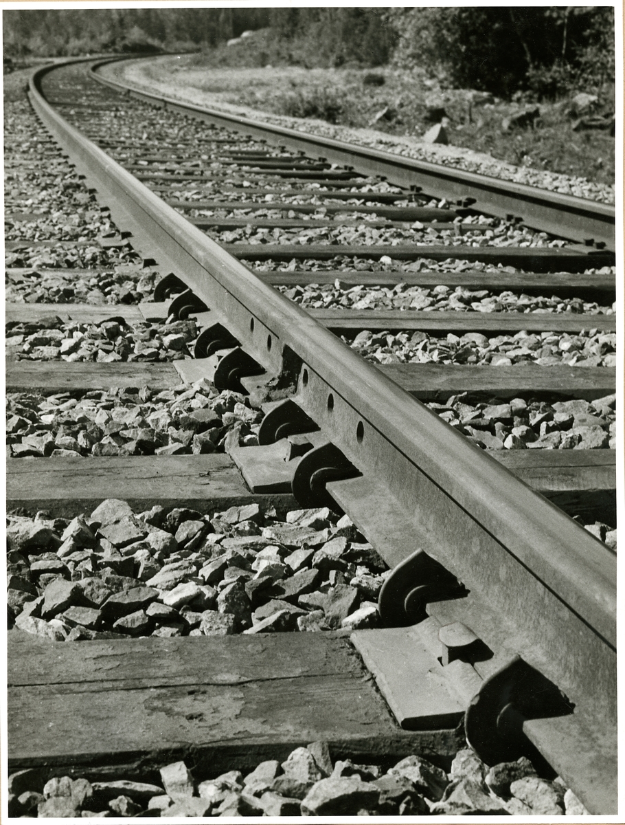 Järnvägssträcka vid Skutskär, spår med Fair T rälsvandringshinder.