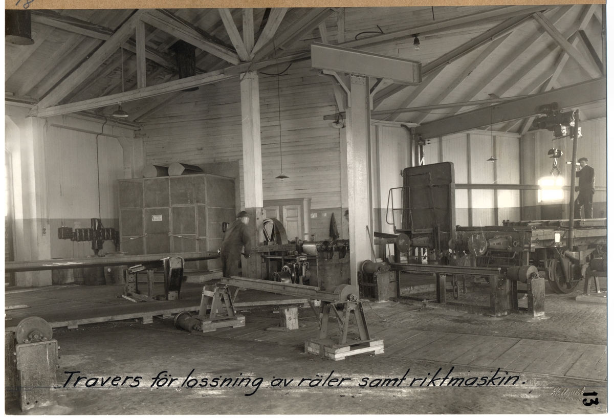 Travers för lossning av räler samt riktmaskin vid rälsjusteringsanläggningen i Hallsberg.