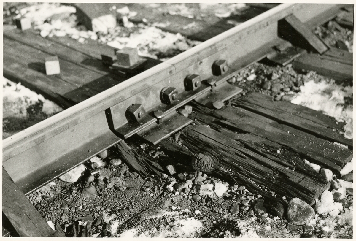 Titel: Banarbete efter urspårning av tåg 93, Nordpilen, på sträckan mellan Simeå och Undersvik 1956-03-27.