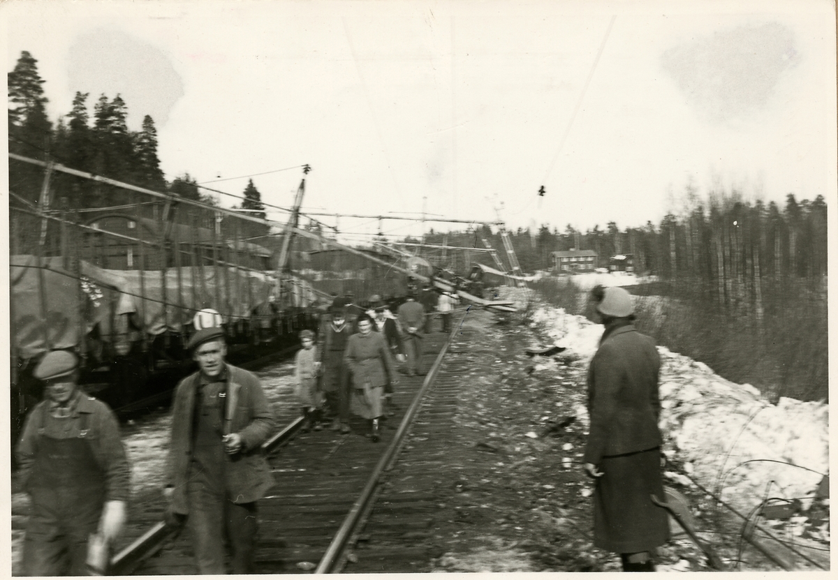 Tåg 93, 'Nordpilen', urspårat i Granbo 1956-03-29.