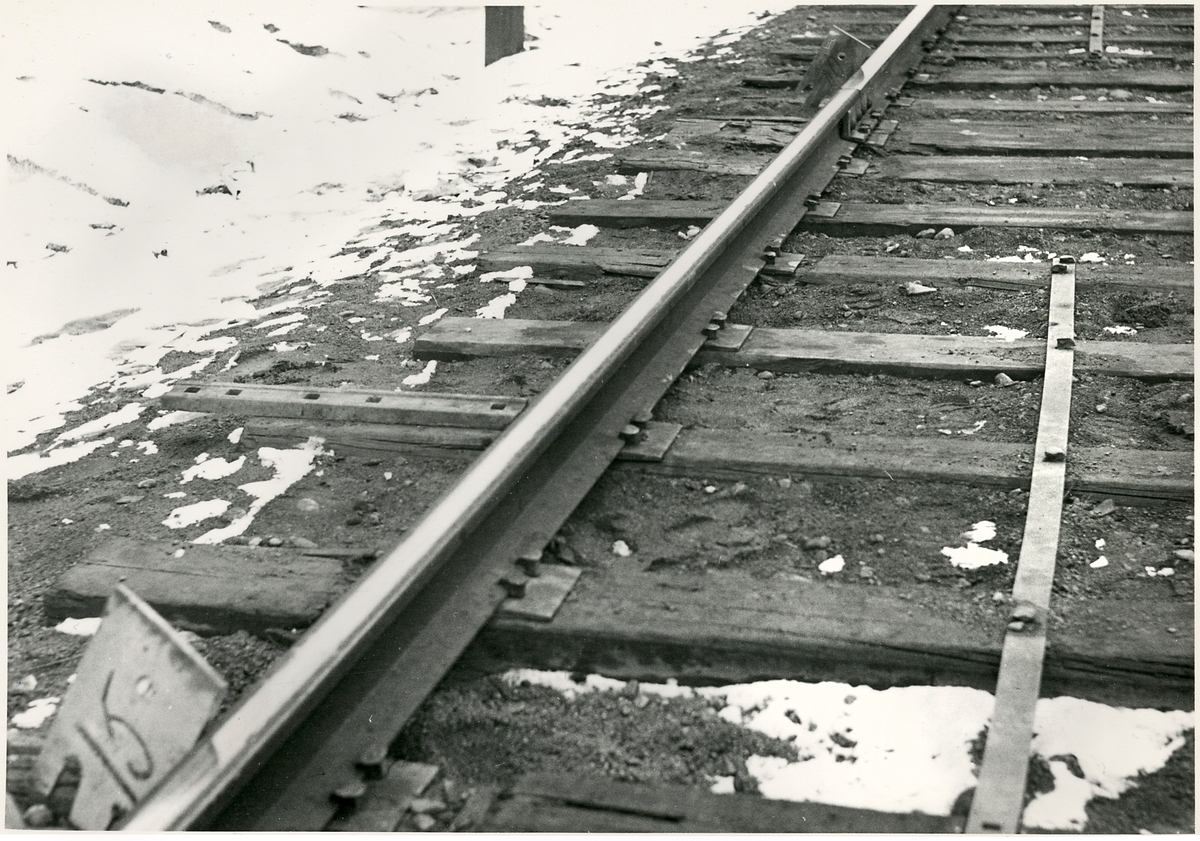 Del av bangården efter olyckan 1956-03-29 då tåg 93, 'Nordpilen, spårade ur vid Granbo station.