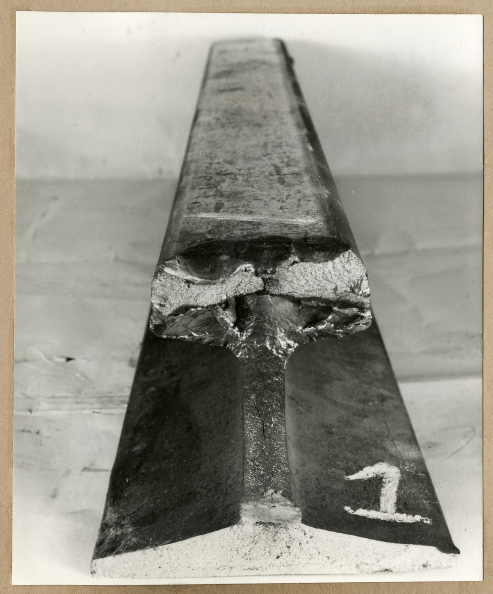 Titel: Delar av räl efter rälsbrott vid Getå den 30/5 1959.