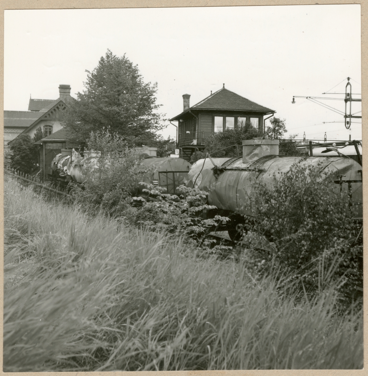 Titel: Tankvagnar med natronlut efter urspårning med godståg.