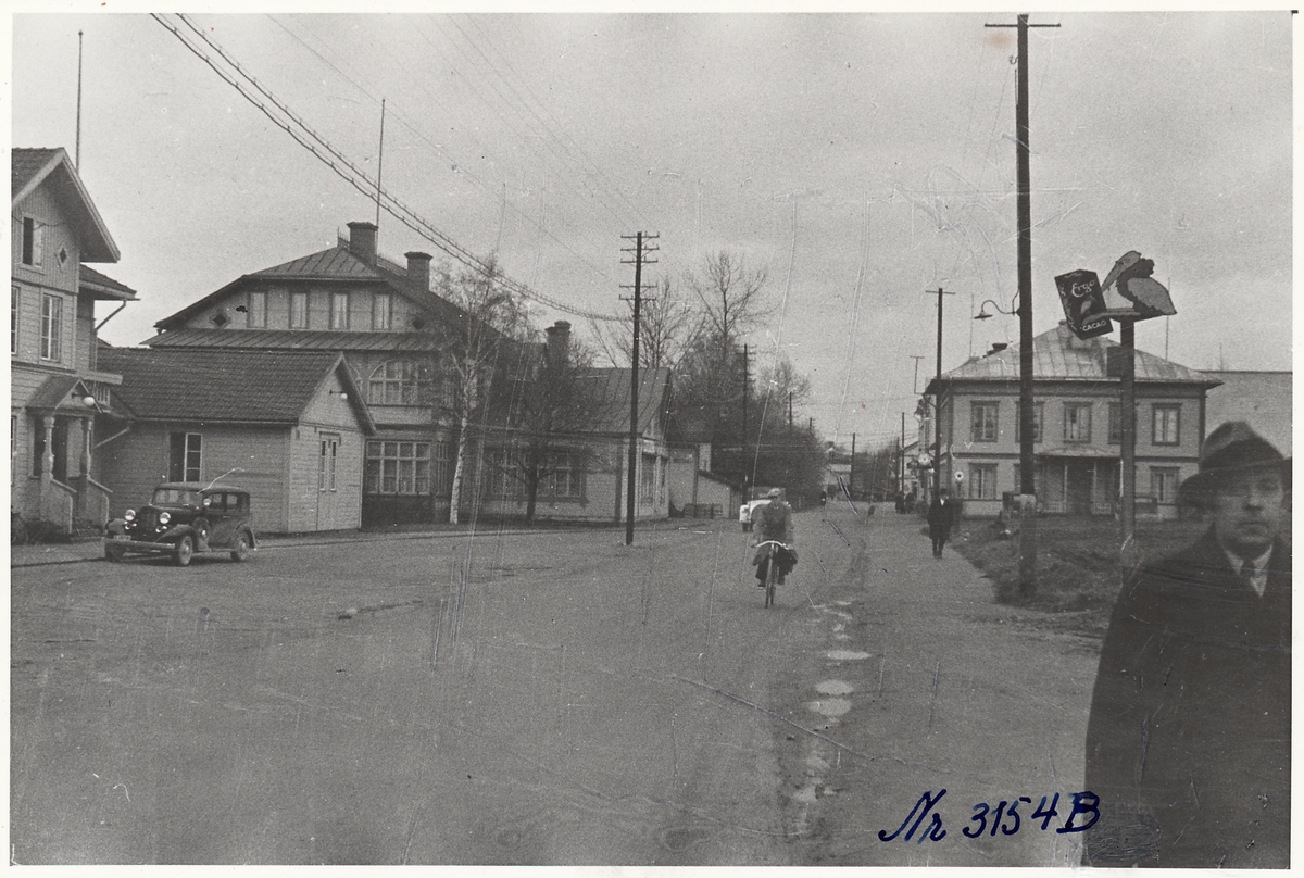 Ljusdals stationshus med omgivning. Stationshuset längst till vänster, byggnaden bredvid är järnvägshotellet.