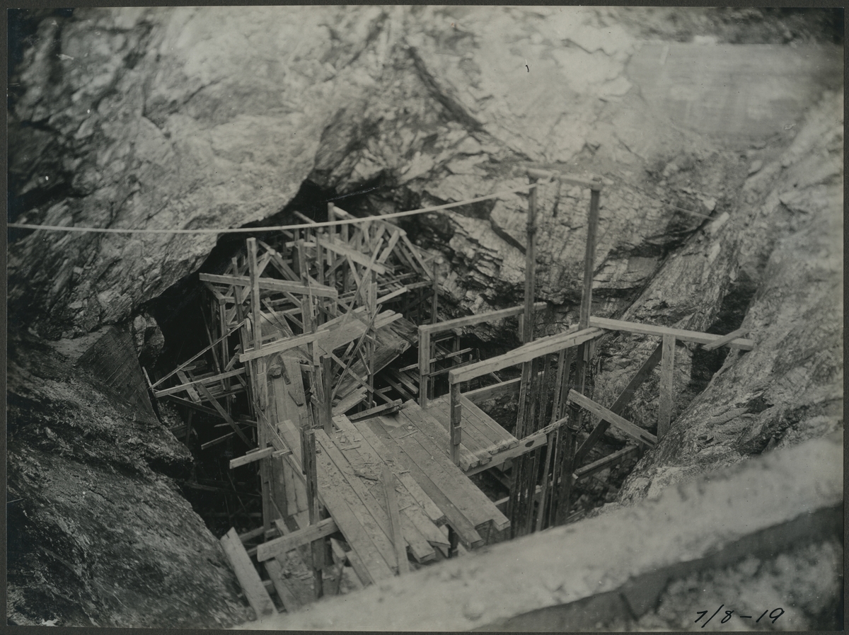 Titel: Strömgärdena Rönninge Ström. Öppningen (sedd ovanifrån) mellan norra och södra delarna av Strömtunneln