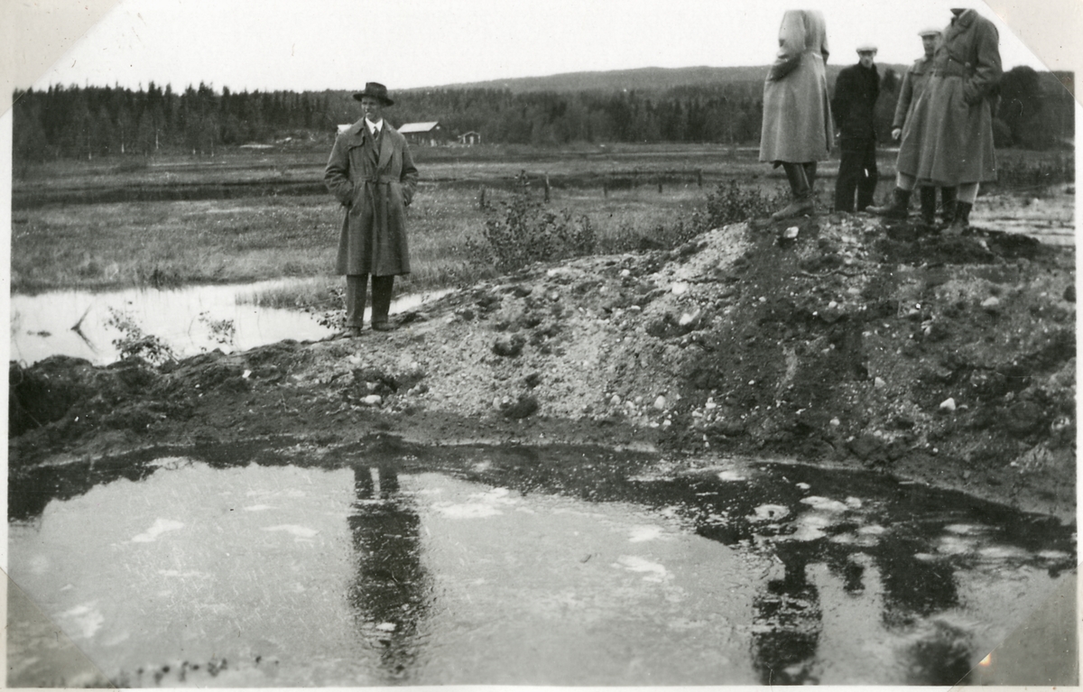 Titel: Bombningen vid Svartälvs Järnväg. Banvallen avbruten efter bombanfallen.