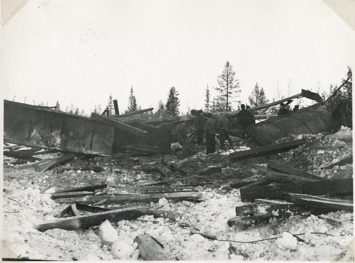 Titel: Bombning av plåtbalksbro i Ålså. Efter 250 kg:s bomb.
