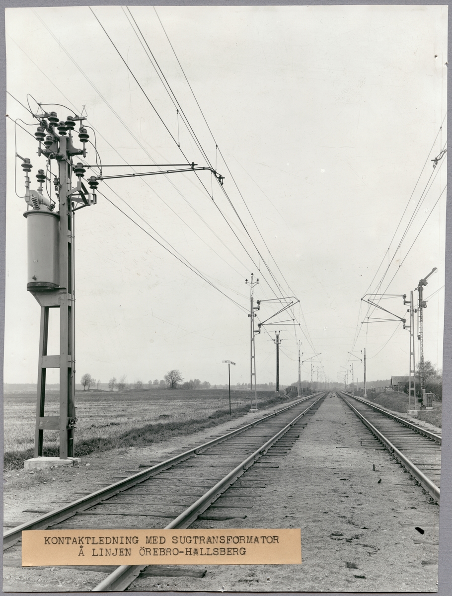 Kontaktledning med sugtransformator på linjen Örebro - Hallsberg.