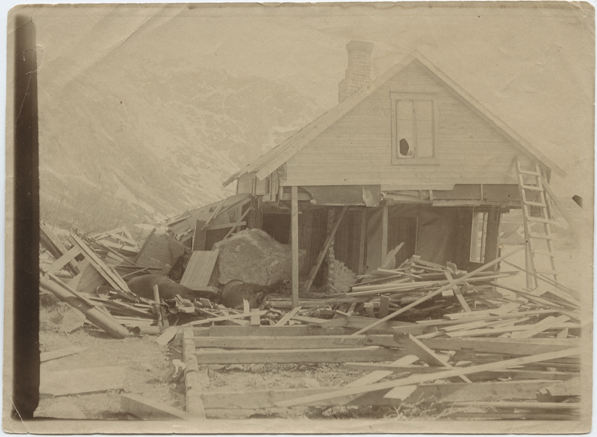 Titel: Rombaksbotten efter raset Två hästar syns under klippblocket
