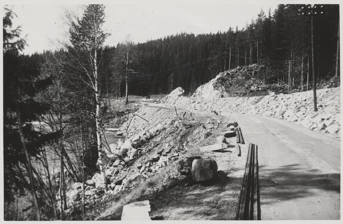 Anläggande av landsväg vid "Lugnet" i samband med uppförandet av Statsbanan Malung-Vansbro. På linjen mellan driftplats Nordanåker och driftplats Hovafors.