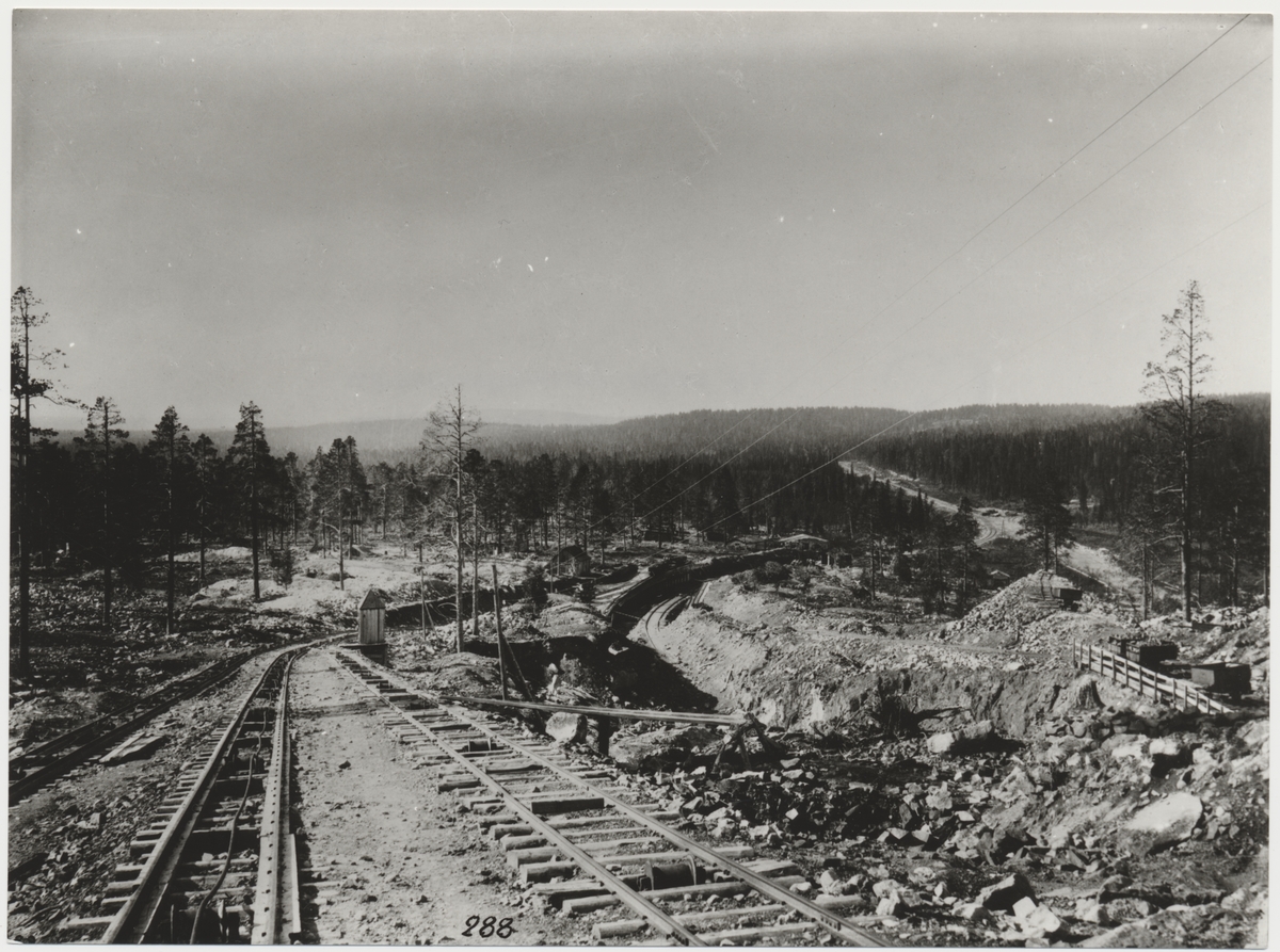 Titel: vy vid den smalspåriga malmbanan "Hertigen" i Malmberget.