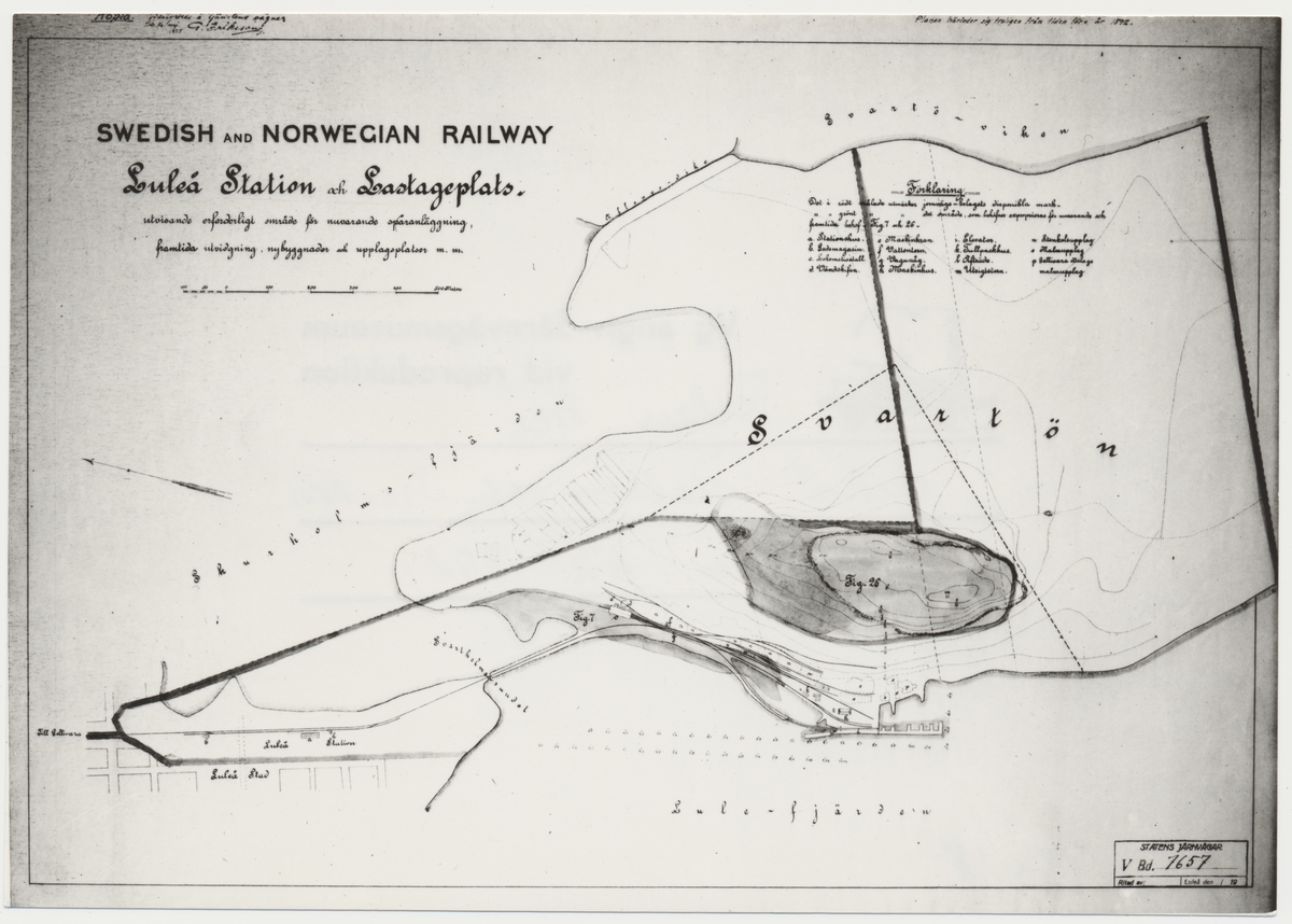 Titel: Ritning över Svensk-Norskajärnvägen vid Svartön och Luleå
