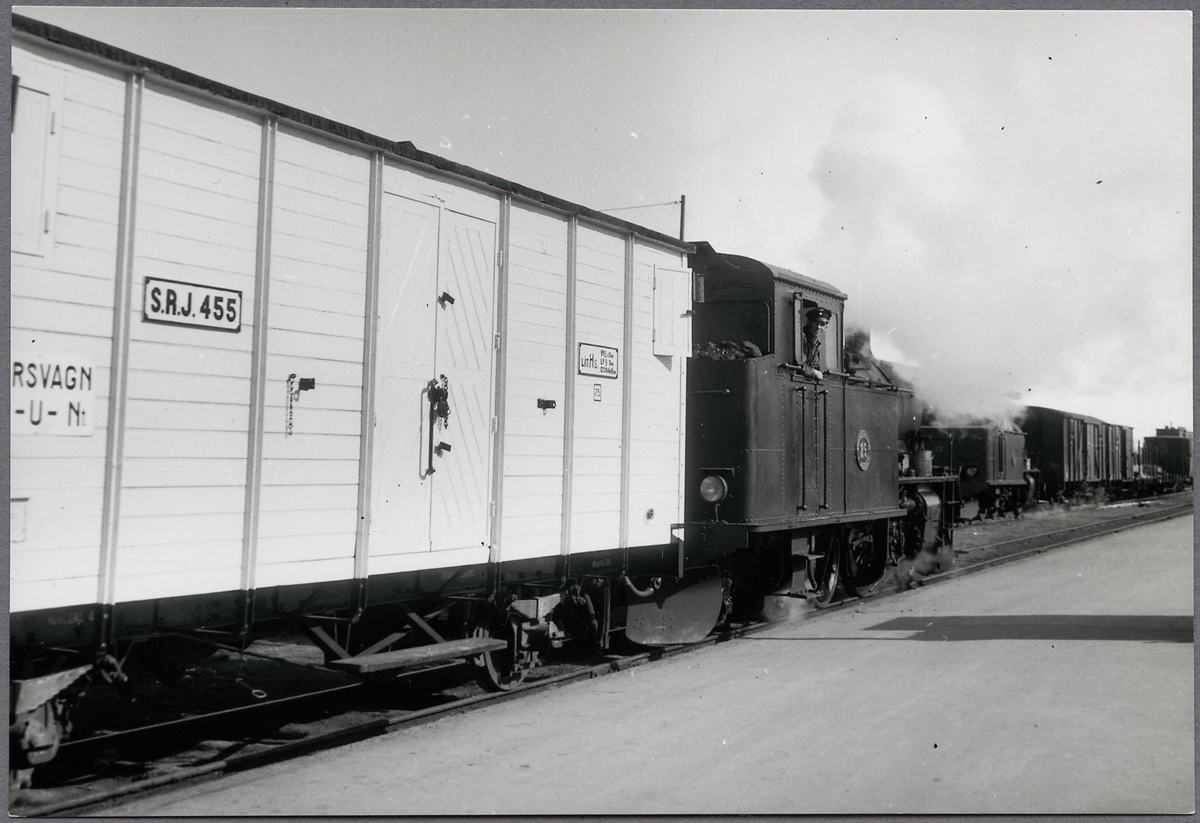 Uppsala Ö station. Stockholm-Roslagen Järnvägar, SRJ Hs 455 och SRJ lok 25.