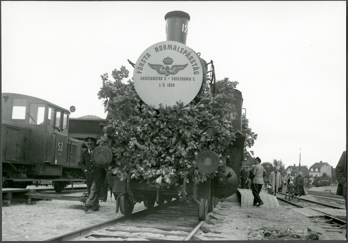 Första normalspårtåget Statens Järnvägar, SJ S 1247. Vid sidan om står Statens Järnvägar, SJ Z43 299.