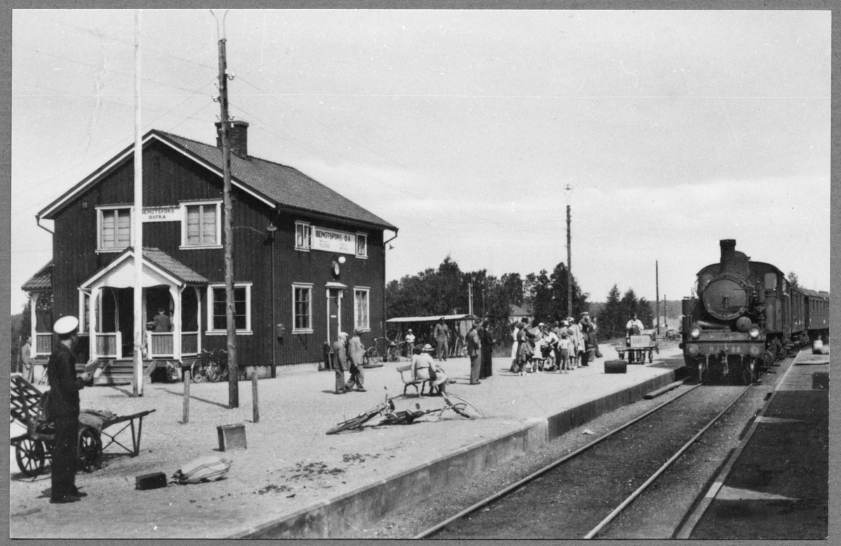 Station öppnad 1927 med tvåvånings stationshus i trä. Godsmagasinet tillbyggt lite senare. Stationen nedlagd 1986.