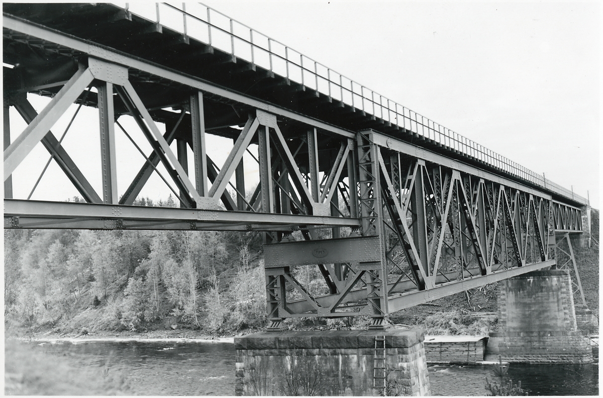 Bron över Skellefteälven på linjen mellan Klutmark och Slind längs statsbanan Bastuträsk - Skellefteå - Skelleftehamn.